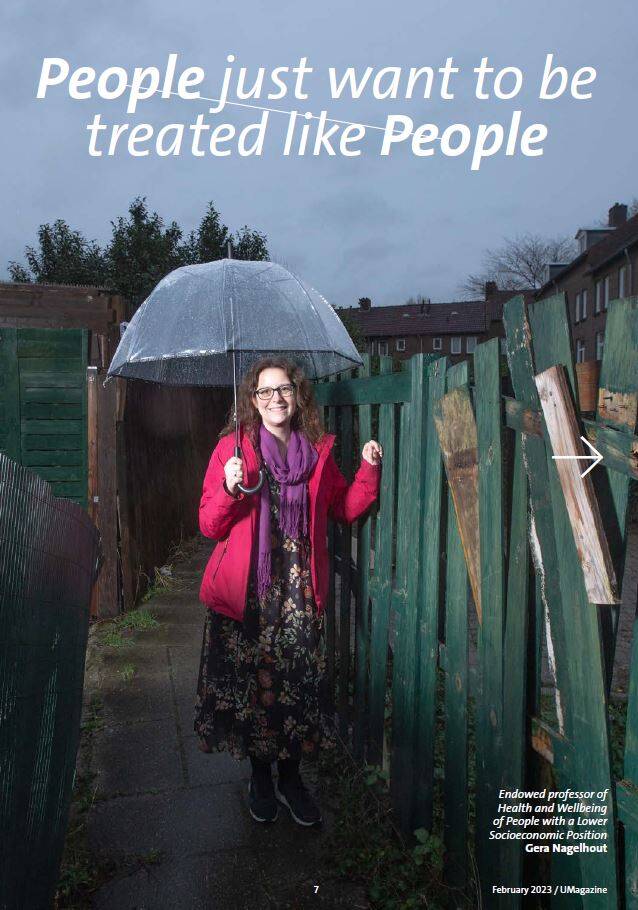MAASTRICHT UNIVERSITY - Gera Nagelhout is, in many respects, not a typical professor. She was the first in her family to attend university, and at the age of 34 was appointed endowed professor of Health and Wellbeing of People with a Lower Socioeconomic Position. Working within the confines of the ivory tower is alien to her. "People often say this target group is hard to reach. That's just not true." She talks here about the impact of poverty on health. https://www.maastrichtuniversity.nl/nl/file/umagazinefebruari2023spreadpdf